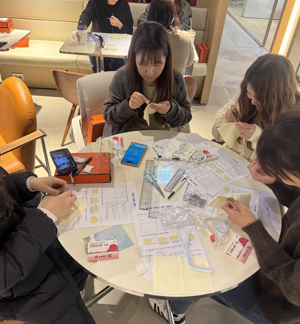 <사진: 히크만 주머니 제작에 참여하고 있는 HDC랩스 임직원들. HDC랩스 제공>